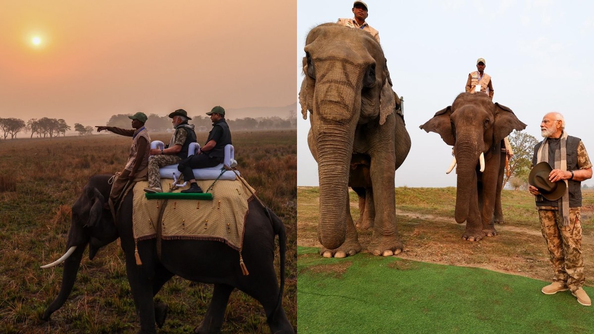 ''ഇന്ന് രാവിലെ ഞാൻ അസമിലെ കാസിരംഗ ദേശീയോദ്യാനത്തിൽ ആയിരുന്നു. പച്ചപ്പിന് നടുവിൽ സ്ഥിതി ചെയ്യുന്ന ഈ യുനെസ്കോയുടെ ലോക പൈതൃക സൈറ്റ് ഗാംഭീര്യമുള്ള ഒറ്റക്കൊമ്പൻ കാണ്ടാമൃഗം ഉൾപ്പെടെയുള്ള വൈവിധ്യമാർന്ന സസ്യജന്തുജാലങ്ങളാൽ അനുഗ്രഹീതമാണ്'' പ്രധാനമന്ത്രി എക്സിലെ പോസ്റ്റിൽ പറഞ്ഞു. ഒപ്പം ആനപ്പുറത്ത് സഫാരി നടത്തുന്നതിന്റെയും കാസിരംഗയിലെ ജീപ്പ് സഫാരിയുടെ ചിത്രങ്ങളും അദ്ദേഹം പങ്കുവെച്ചു.