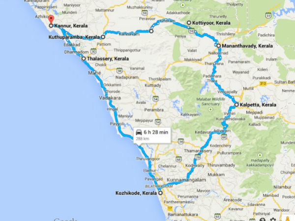 കൽപ്പറ്റയിൽ നിന്ന് താമരശ്ശേരി ചുരം വഴി കോഴിക്കോട്ടേക്കാണ് നമ്മുടെ യാത്ര. കല്പറ്റയിൽ നിന്ന് 70 കിലോമീറ്റർ ആണ് കോഴിക്കോട്ടേക്കുള്ള ദൂരം. ഏകദേശം പന്ത്രണ്ട് മണിയോടെ നമുക്ക് കോഴിക്കോട് എത്തിച്ചേരാം. (യാത്രയ്ക്കിടെ കാഴ്ചകൾ കണ്ട് അൽപ്പം സമയം ചിലവഴിച്ചിട്ടുണ്ടെങ്കിൽ ഒരുമണി രണ്ട് മണിയോടെയെ കോഴിക്കോട് എത്തുകയുള്ളു. എങ്ങനെയായാലും മൂന്ന്